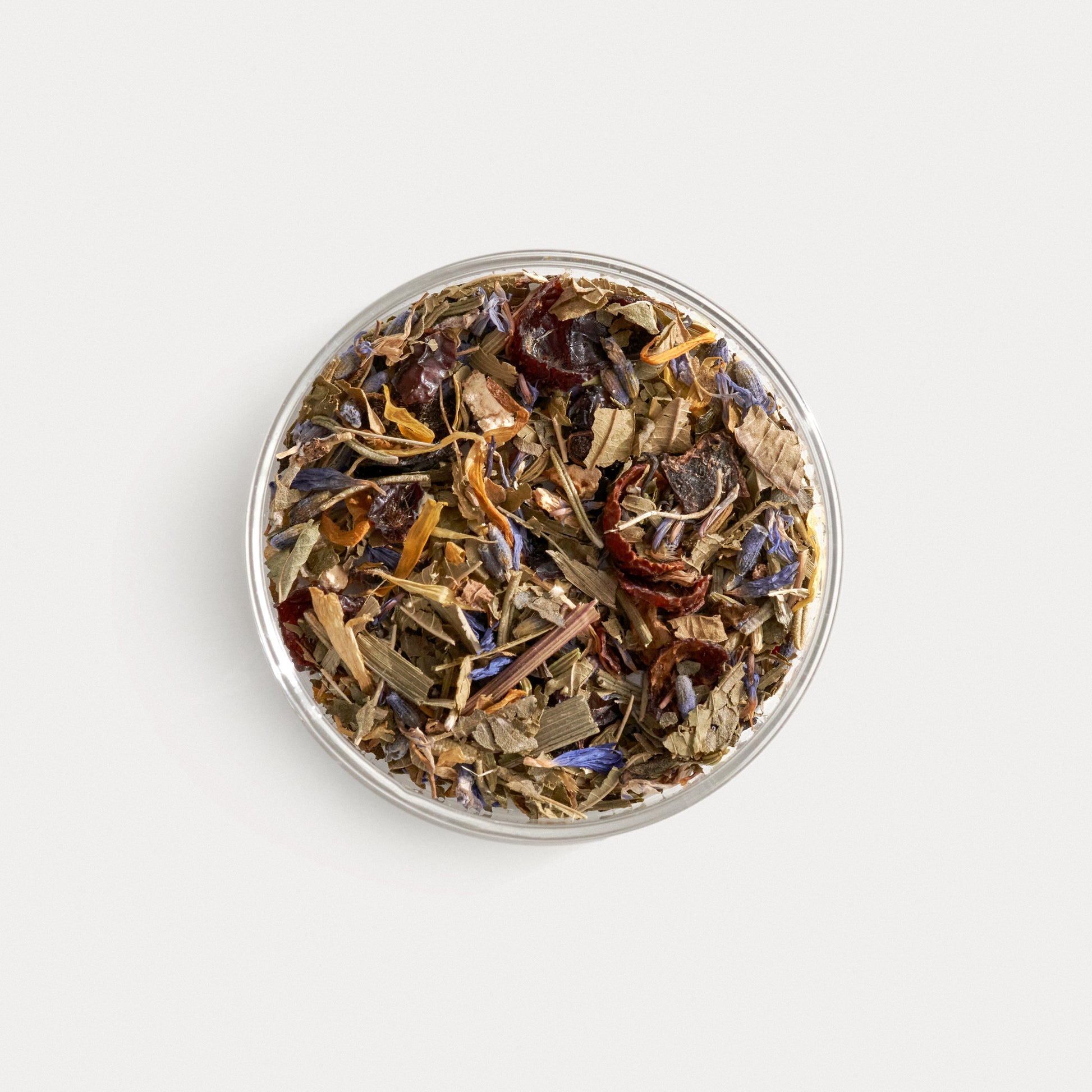 Lemon Verbena, Rose Hips, Lemon Peels, Mulberry Leaves, Sweet Fennel, Bitter Orange Peel, Lavender Flowers, Rosemary Leaves, Blue Cornflower, Marigold Flowers, and Natural Flavourings