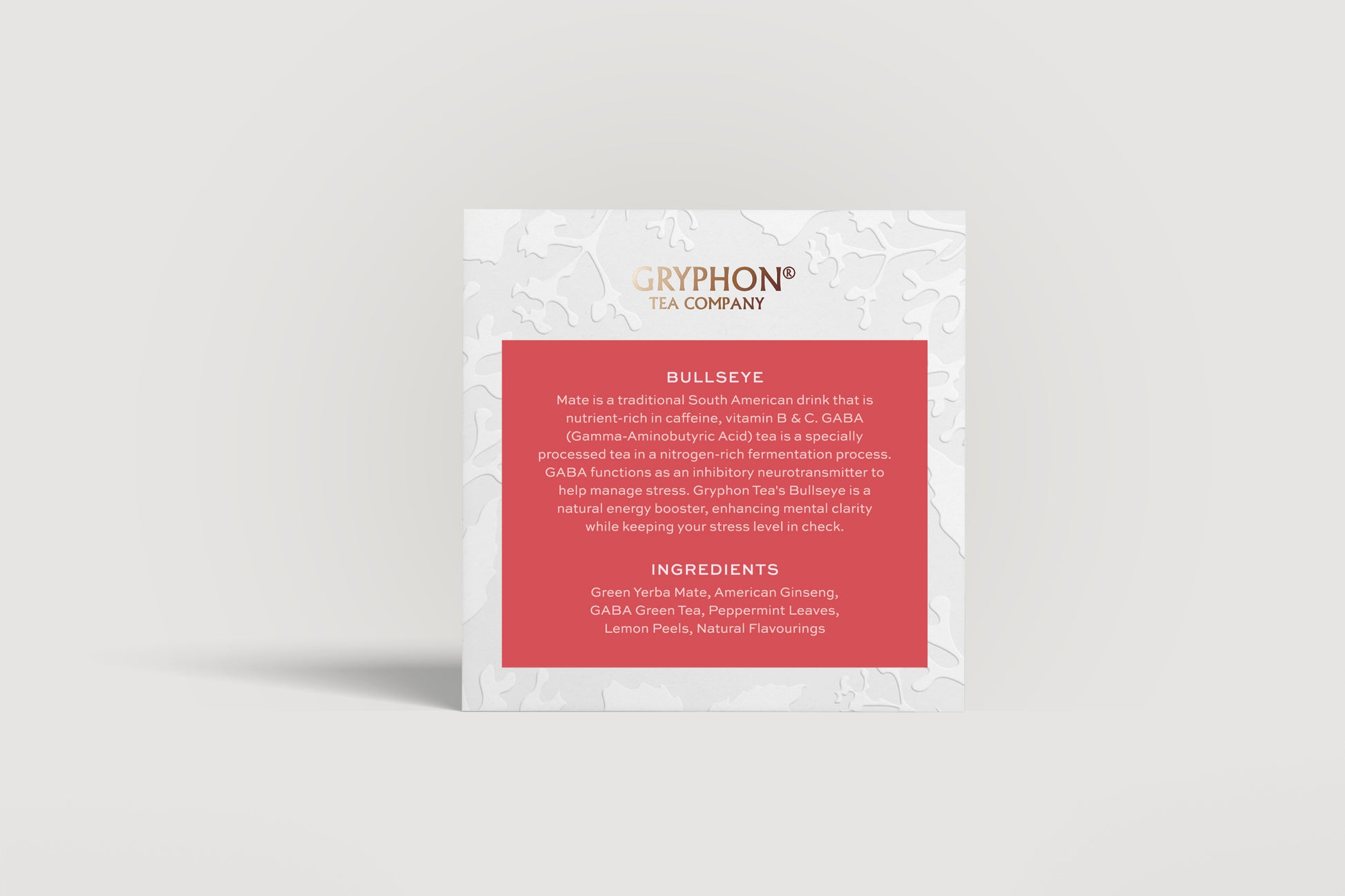 Yerba Mate is a traditional South American drink that is nutrient-rich in caffeine, vitamin B & C. GABA (Gamma-Aminobutyric Acid) Tea is a specially processed tea in a nitrogen-rich fermentation process. GABA functions as an inhibitory neurotransmitter to help manage stress. Gryphon's Bullseye is a natural energy booster, enhancing mental clarity while keeping your stress level in check.