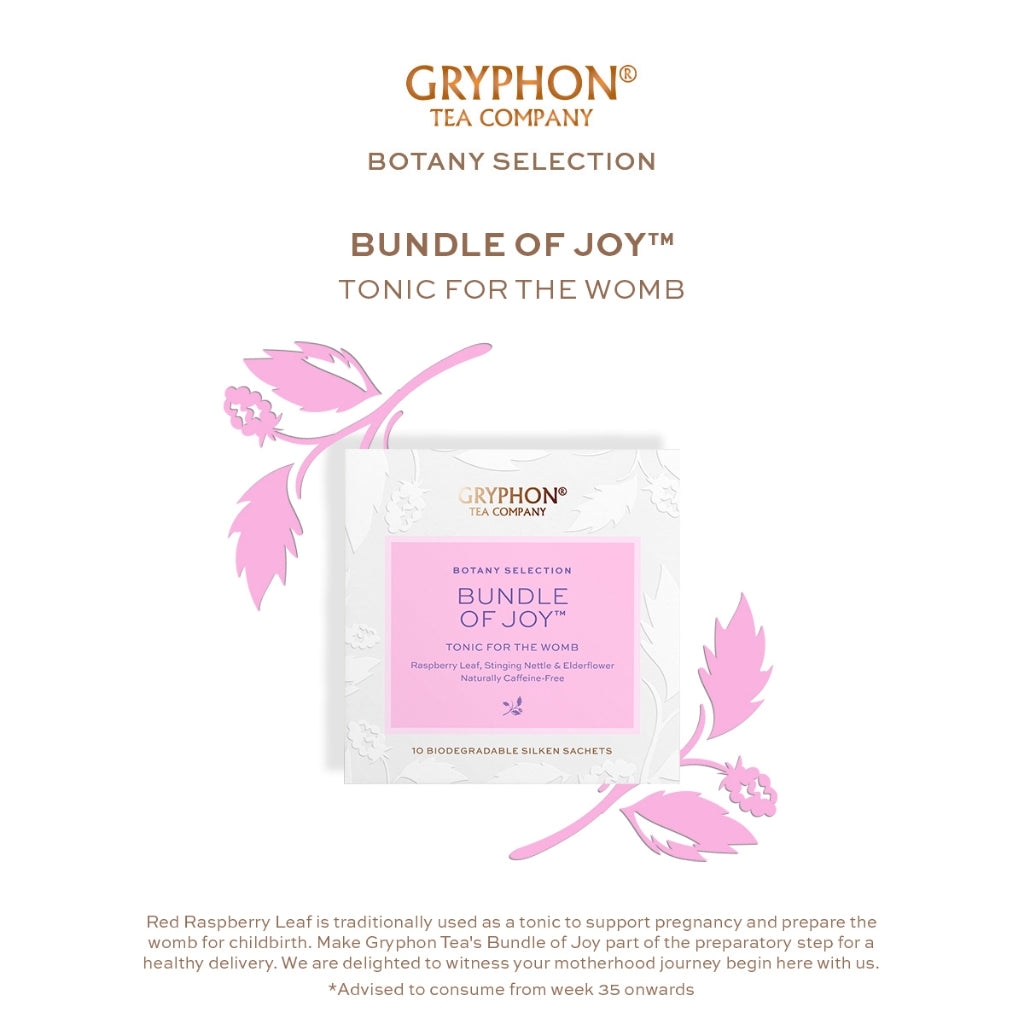 Tonic For The Womb Red Raspberry Leaf is traditionally used as a tonic to support pregnancy and prepare the womb for childbirth. Make Gryphon Tea's Bundle of Joy part of the preparatory step for a healthy delivery. Advised to consume from week 35 onwards 10 Individually Wrapped Biodegradable Silken Sachets