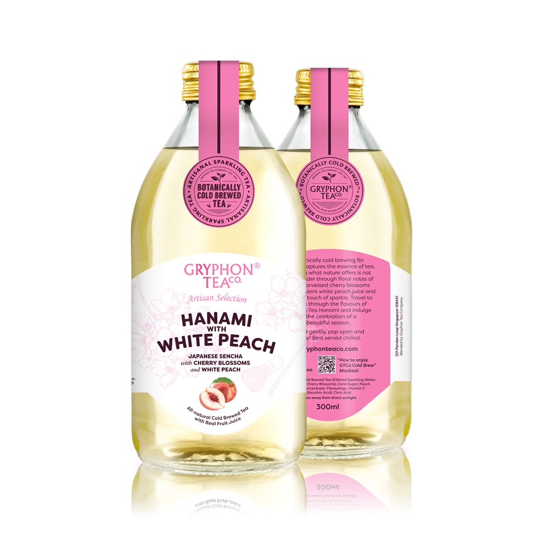 Wander through floral notes of hand-harvested cherry blossoms with succulent white peach juice and a festive touch of sparkle. Travel to Japan through the flavours of Gryphon® Tea Hanami and indulge in the celebration of a beautiful season.Contains Natural Cane Sugar