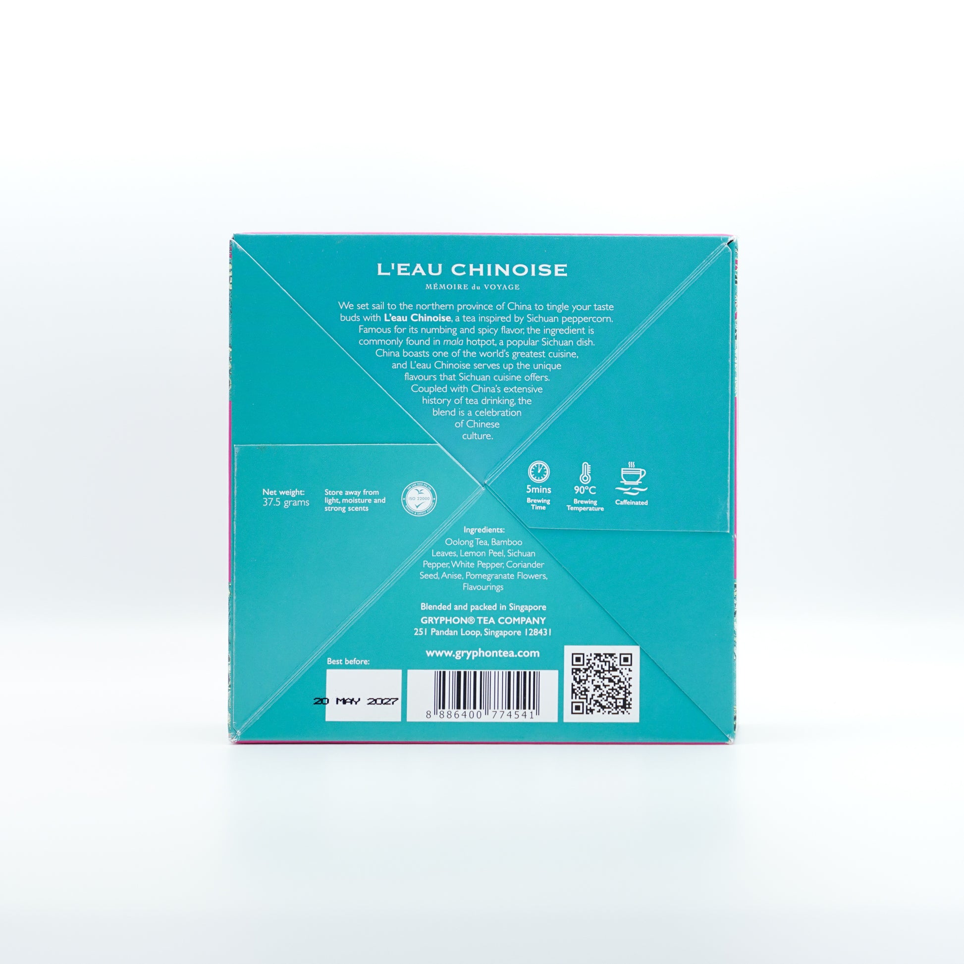 We set sail to the northern province of China to tingle your taste buds with L’eau Chinoise, a tea inspired by Sichuan peppercorn. Famous for its numbing and spicy flavor, the ingredient is commonly found in mala hotpot, a popular Sichuan dish. China boasts one of the world’s greatest cuisine, and L’eau Chinoise serves up the unique flavours that Sichuan cuisine offers. Coupled with China’s extensive history of tea drinking, the blend is a celebration of Chinese culture. 15 sachets in a box.