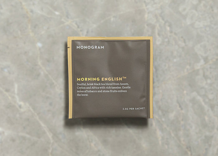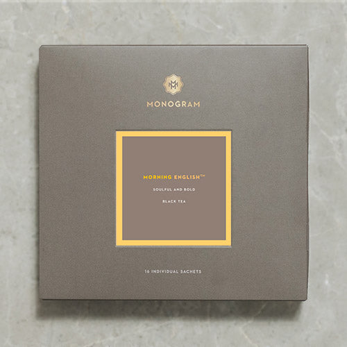 Morning English is Monogram’s interpretation of the timeless breakfast blend, uniting bold Assam, brisk Ceylon, and robust African black teas. The cup opens with assertive tannins and a deep malty body, softened by subtle stone fruit undertones and whispers of tobacco. Layered and resonant, this infusion is designed to