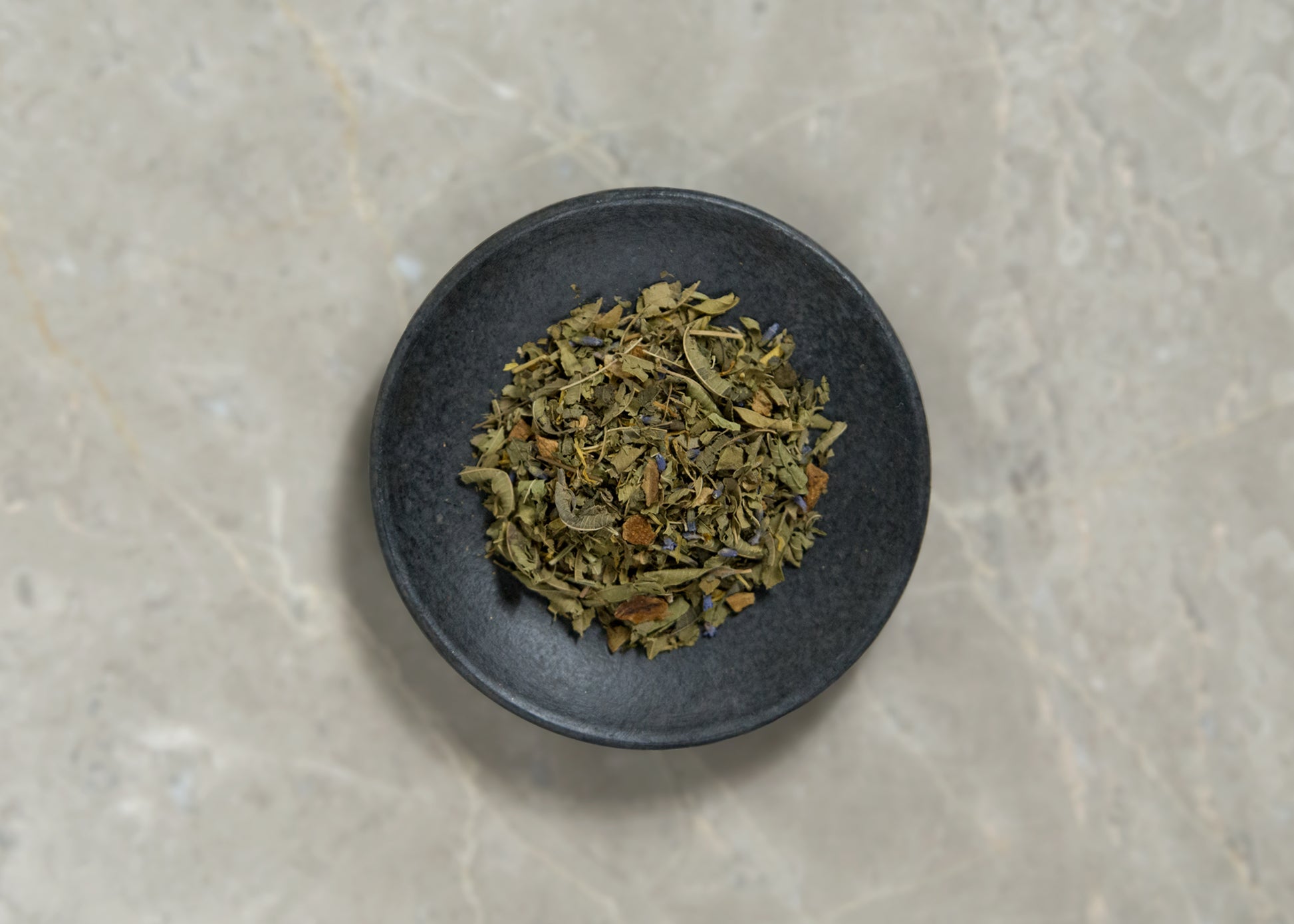 A celebration of Mediterranean botanicals, this infusion brims with lemon verbena, lemon myrtle, eucalyptus, lavender, and rosemary. The aroma is vibrant and uplifting, evoking fields of herbs under summer light.