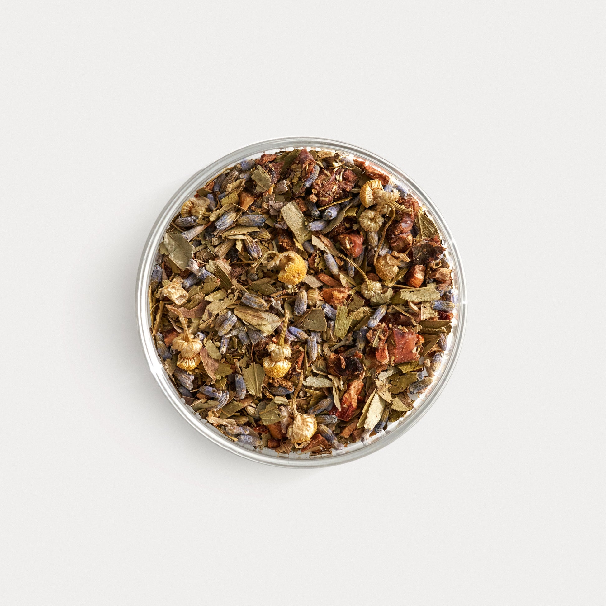 Bael Fruit, Roasted Apples, Senna Leaves, Chamomile Flowers, Lavender Flowers, Cinnamon Bark, and Natural Flavourings