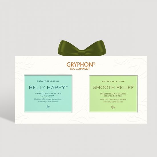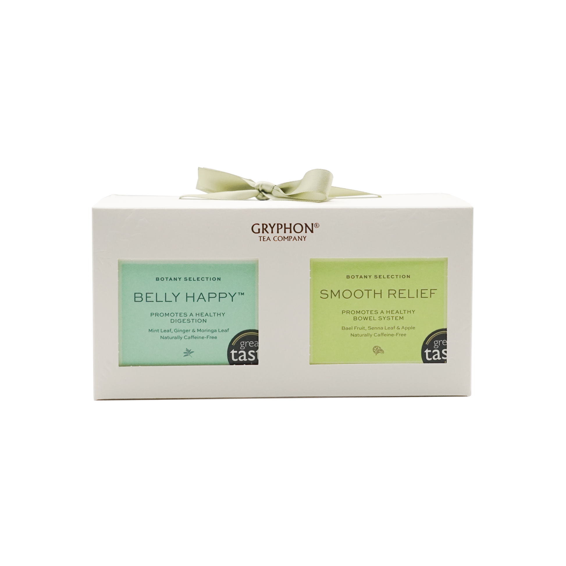 Peppermint oil is traditionally used as a remedy for indigestion and irritable bowel syndrome. Gryphon Tea's Belly Happy is a blend of naturally caffeine-free herbs with Mint Leaves, Ginger, Sweet Fennel, and Nutmeg Flowers to help alleviate associated syndrome from stomach acids.